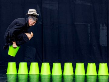 Dans ce spectacle muet, Bakéké, un personnage audacieux, vêtu d’une blouse noire et d’un chapeau de paille, s’acharne à ériger des constructions géométriques à l’aide de simples seaux. Rêveur et obstiné, il poursuit une perfection insaisissable, au risque de sombrer dans l’absurde. Bakéké (qui signifie « seau » en langue hawaïenne) choisit de transformer ses défaites en terrain de jeu.